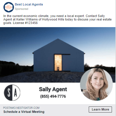 Promote yourself and the services you offer. A “myself” ad allows for the focus to be on you and your expertise rather than promoting an active listing. You have the option of choosing your Postamo profile as the landing page, or your own website. Any leads that you generate from your Postamo profile landing page will be sent to the email associated with your Postamo account.