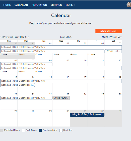Another amazing bonus of using a social media calendar for your real estate marketing is creating high quality content by helping you allocate your assets effectively. You are consistently pushing your brand and the content that supports your real estate marketing goals. Not to mention, the ability to track what works and improve it. What you schedule gets done, and what gets measured gets improved.